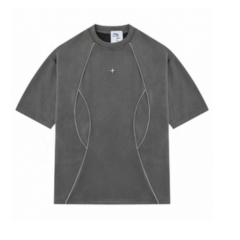 Çift katmanlı adam kısa kollu % 100% pamuk sıkıntılı boy asit boy taş yıkama yumuşak Vintage tişört
